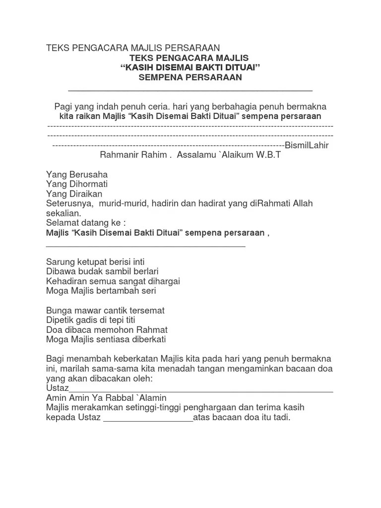 Teks Pengacara Majlis Perpisahan : Teks Pengacara Majlis Tilawah Pdfcoffee Com